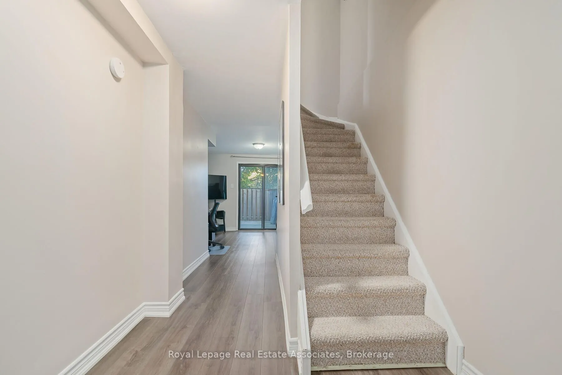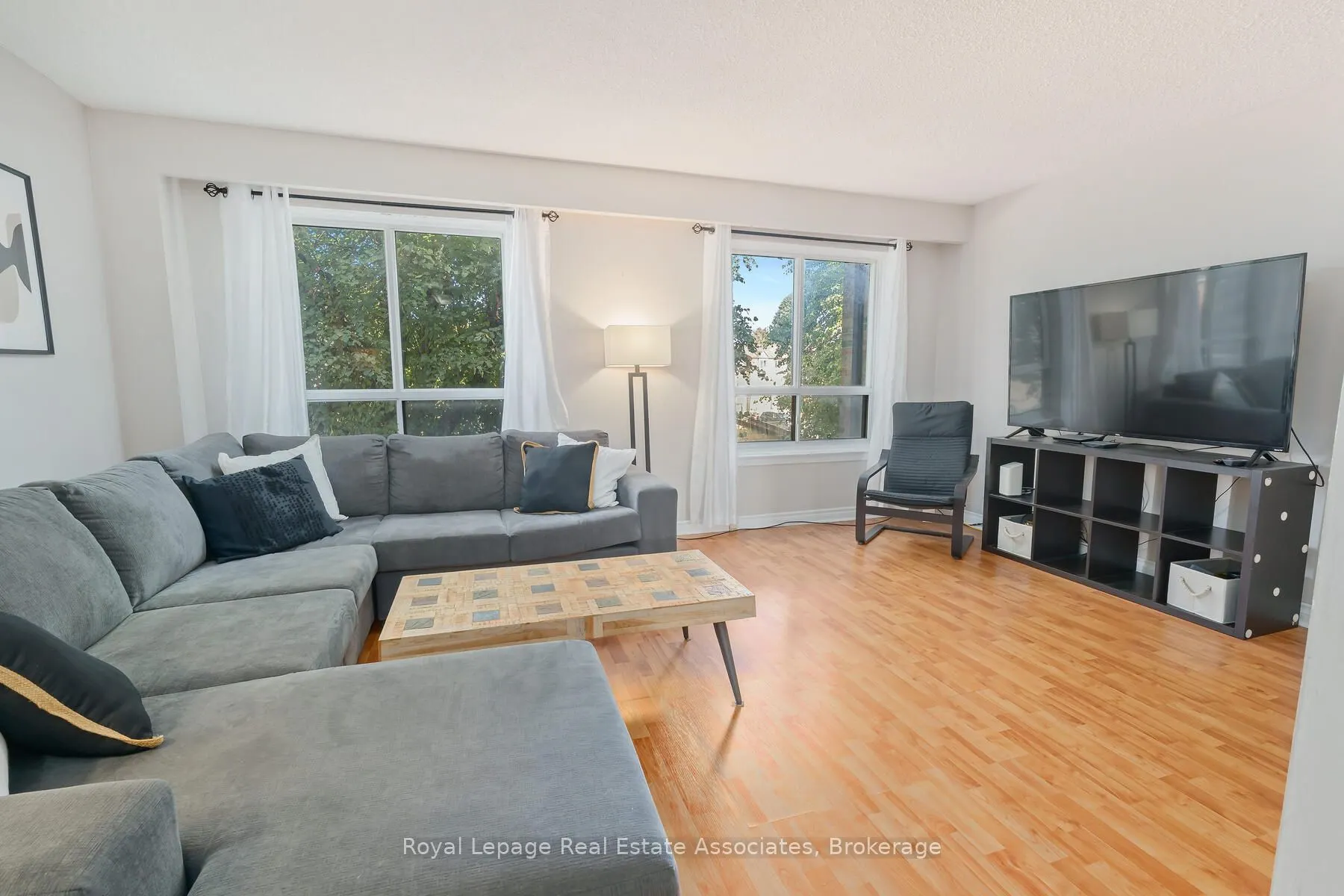 Live in a bright, move-in-ready townhome at 2 Moregate Crescent, perfect for first-time buyers or growing families. This 3-bedroom, 2-bath home offers a practical layout with carpet-free living and thoughtful updates throughout. The main floor features a convenient 2-piece bathroom by the entrance a...nd an open-concept living and dining area with large windows overlooking the backyard. The private kitchen faces the front yard and includes tile flooring, stainless steel appliances, a full pantry, and plenty of storage, while a double closet on the main floor helps keep things organized. On the second floor are three spacious bedrooms, including a primary with a generous walk-in closet, one with a double closet, and another with a standard closet, alongside a 4-piece bathroom. The finished basement adds versatility with luxury vinyl flooring (2022), a laundry area with a sink, and a rec room with a walkout to a fully fenced yard and deck, ideal for enjoying a barbecue or a quiet evening outdoors. Additional storage under the front porch and two parking spots, including a garage and driveway space, add even more convenience. This family-friendly community offers a playground, basketball court, outdoor inground pool, party/rec room, and plenty of visitor parking. Maintenance fees include exterior unit maintenance (windows, doors, roof, etc.), water, cable, high-speed internet, snow removal, and landscaping. Minutes from Trinity Commons, parks, trails, schools, the hospital, Highway 410, and other commuter routes, this home is ready for your next chapter. Extras: Roof (2023), New Front Door (2024).